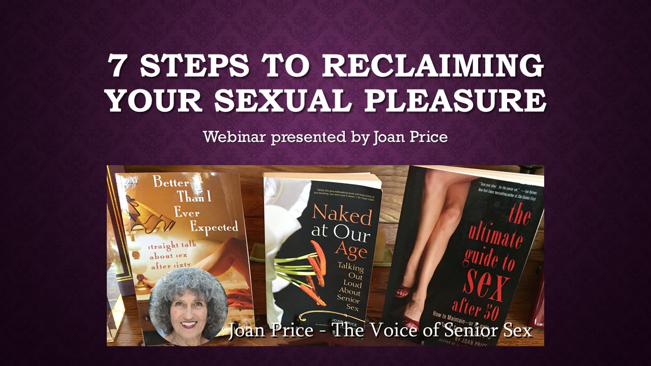 If you’re interested in a webinar that has already happened, you can purchase viewing rights for $55 for one; $50 each for two; or $45 each for three or more. (All prices US dollars.) Each 90-minute webinar was recorded in its entirety and you can watch at your convenience — multiple times if you wish. Once I receive your payment via PayPal or check, I’ll send you the link and password. Email me for details, telling me which senior sexuality webinars you wish to view.