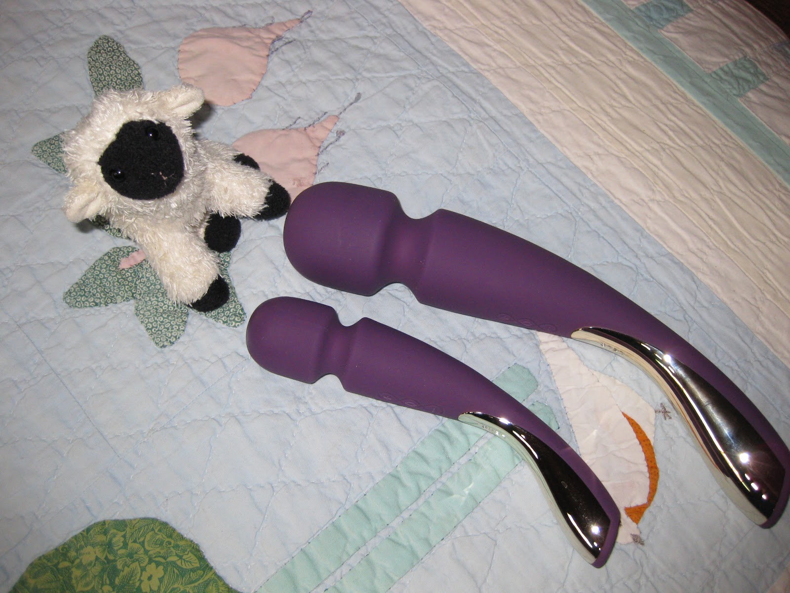 In fact, LELO’s own website says it’s for “deeply satisfying all-over body massage.” Why didn’t I think of that? Of course if you’re using it for all over body massage, you might have the numbing hand problem. I wonder why it’s made with a vibrating handle, since there’s no way to use that handle for anything other than holding on. Sex blogger Dangerous Lilly mentioned in her excellent review of the Smart Wands that if you hold the large wand in the middle of the handle (the thinnest part), the vibrations are weakest there.
