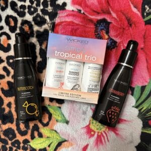 Enhance your oral play with Wicked Sensual Care’s flavored lubricants, safe (including internally) and delicious. Try one or both of the “teaser” sample packs to find a favorite flavor. Mine is Mango, FYI, but they’re all amazing. I always have several flavors on hand because sometimes it’s a Cinnamon Bun or Strawberry morning, or Butterscotch or Coconut might strike my fancy.
